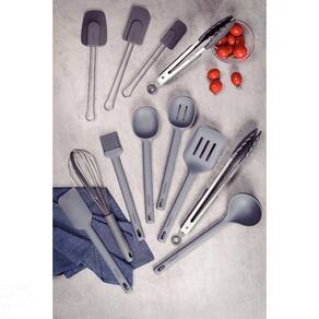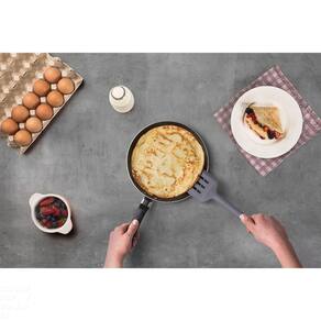 Para deixar sua cozinha muito mais prática e moderna, a espátula de silicone perfurada Tramontina Moldê cinza é a escolha perfeita! Ela lhe proporciona flexibilidade, resistência e é a escolha perfeita para utilização em suas panelas, caçarolas e frigideiras com revestimento antiaderente ou cerâmico, pois não os danifica. Ela resiste a temperaturas de até 180 °C e pode ser levada à máquina de lavar louças, otimizando suas tarefas na cozinha. Sem dúvida, um utensílio indispensável para completar sua cozinha! Orientações Espátula de silicone, que resiste até uma temperatura de 180 °C. Com furo passante no cabo possibilitando que seja pendurado na sua cozinha. Utensílio ideal para uso em panelas com revestimentos antiaderentes e cerâmicos, pois não danifica o produto. Pode ir à máquina de lavar louças facilitando seu dia a dia. Características Gerais EAN13 7891112298903 DUN14 17891112298900 NCM 3924.10.00 Peso Líquido 0,0850 kg. Peso Bruto 0,0900 kg. Metragem 0,001711 m³. Dimensões Embalagem (Compr. X Larg. X Alt.) 43x 102x 390 mm. Dimensões Produto (Compr. X Larg. X Alt.) 298x 81x 28 mm. Cor 1 63666A Hexa Observações Antes da primeira utilização, lave bem a peça e seque-a. Não utilizar esponja abrasiva para limpeza e para maior durabilidade do produto recomenda-se secar bem antes de guardar, mesmo após lavagem em máquina. O produto pode sofrer alterações no aspecto visual ao longo do uso, em virtude da pigmentação dos alimentos e degradação natural da cor do utensílio. Não deixar o utensílio em superfícies quentes por tempo prolongado. Não armazenar o utensílio junto a materiais cortantes e perfurantes. Para descarte do produto e embalagem siga as orientações de reciclagem vigentes.