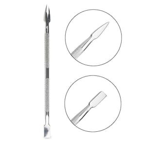 A espátula com duas pontas para cutículas de aço inoxidável é uma ferramenta essencial para quem busca manter as unhas bem cuidadas. Com duas pontas, uma arredondada para cuidar das cutículas e ter a cutilarem perfeita, e uma ponta em v levemente afinada para auxiliar na remoção de cantinhos das unhas e peles. Sua construção feita em aço antiácido, não magnético, aço inoxidável sueco, com alta estabilidade, design ergonômico e funcionalidade versátil a tornam uma escolha excelente tanto para profissionais quanto para uso doméstico. Um instrumento de alta qualidade e eficiência.