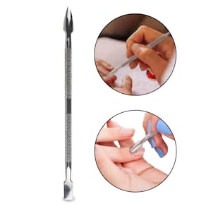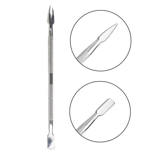 A espátula com duas pontas para cutículas de aço inoxidável é uma ferramenta essencial para quem busca manter as unhas bem cuidadas. Com duas pontas, uma arredondada para cuidar das cutículas e ter a cutilarem perfeita, e uma ponta em v levemente afinada para auxiliar na remoção de cantinhos das unhas e peles. Sua construção feita em aço antiácido, não magnético, aço inoxidável sueco, com alta estabilidade, design ergonômico e funcionalidade versátil a tornam uma escolha excelente tanto para profissionais quanto para uso doméstico. Um instrumento de alta qualidade e eficiência.