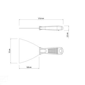 Com a espátula flexível 12 cm Tramontina em aço carbono com cabo de polipropileno construir e reformar vai ficar muito mais prático. Projetada para você produzir mais com menos esforço, ela é uma ferramenta leve perfeita para raspar materiais e trabalhar com diferentes tipos de produtos, como gesso, massa corrida e rejunte. A lâmina de 12 centímetros em aço carbono especial tem excelente durabilidade devido ao processo de afiação empregado. Possui cabo em polipropileno que garante resistência e muito mais conforto, já que possui ranhuras e tem formato ergonômico. Uma peça que melhora o desempenho e traz melhores resultados para seu projeto. Orientações - Fabricada em aço carbono especial de alta qualidade.- A lâmina possui tamanho 12 cm e sua afiação proporciona excelente durabilidade do fio.- Cabo produzido em polipropileno de alta resistência.- O cabo possui ranhuras e tem formato ergonômico, assegurando mais conforto durante o uso.- Produto leve e flexível, que gera menos esforço físico do usuário e proporciona maior produtividade. Características Gerais EAN13 7891117029625 DUN14 17891117029622 NCM 8205.59.00 Peso Líquido 0,0850 kg. Peso Bruto 0,0918 kg. Metragem 0,000596 m³. Dimensões Embalagem (Compr. X Larg. X Alt.) 216x 120x 23 mm. Dimensões Produto (Compr. X Larg. X Alt.) 216x 120x 23 mm. Cor 1 000000 Hexa Observações - A espátula é utilizada na construção civil para raspagem de tinta, cimento e outros resíduos. Sua utilização é indispensável no manuseio e aplicação de gesso, rejunte, massa corrida, resinas e produtos similares. Serve também para a criação de efeitos decorativos em texturas lisas ou granuladas.- Para descarte dos produtos e embalagens siga as orientações de reciclagem vigentes.