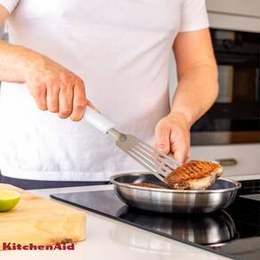 A Espátula Perfurada Flexível da Coleção Clássica KitchenAid foi desenvolvida para lidar com alimentos delicados, unindo resistência, versatilidade e design sofisticado.