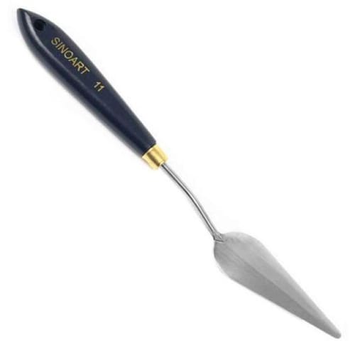 A espátula para pintura em tela Sinoart pode ser utilizada com tintas a base dágua ou com tintas a base de óleo solvente . Fabricada com altíssimo padrão de qualidade a espátula de pintura em tela Sinoart é altamente flexível, não enferruja e possui resistente cabo de madeira. Esta espátula também pode ser aplicada em outras técnicas de pintura. Espátula Metálica Para Pintura Artística Sinoart N°11 Medidas aproximadas do produto - Comprimento: 23 cm - Altura: 2 cm - Largura: 5 cm - Peso: 30 g Ean: 7898958098520