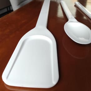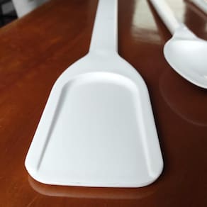 A espátula branca grande da marca Cinquetti é utilizada para mexer alimentos feitos em grandes quantidades em restaurantes, cantinas, hospitais, bares, refeitórios de empresas, escolas e hotéis. Feita em plástico polipropileno, essa espátula de plástico para cozinha tem material resistente, durável e de fácil limpeza e manuseio. O cabo é longo, trazendo segurança e praticidade ao usar a espátula, e possui um orifício, podendo ser pendurada para melhor organização e visibilidade.
