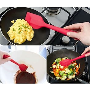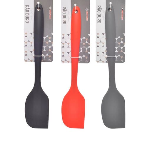 Em silicone, perfeita para mexer seus alimentos nas panelas, pois não risca e é muito mais higiênica que colheres de madeira, por exemplo! Além disso, ela aguenta temperaturas de até 200°C, livre de BPA, adequado para o freezer e lava- louças.