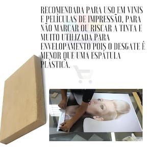 Recomendada para uso em vinis e películas de impressão, para não marcar ou riscar a tinta e muito utilizada para envelopamento de parede pois o desgate é menor que uma espátula plástica.