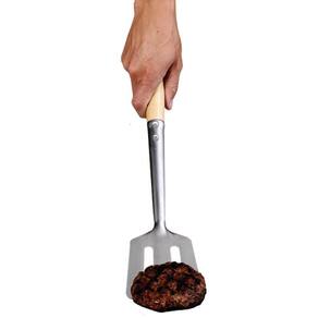 A espátula da Chef'n facilita virar o alimento sem danificá-lo e ao mesmo tempo ajuda a drenar o excesso de óleo.