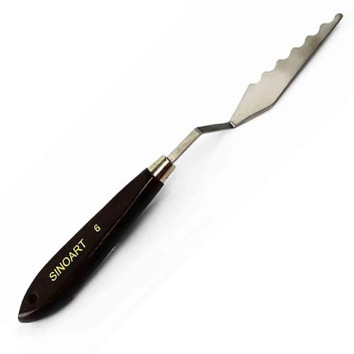 Espátula de pintura para efeitos especiais. Esta espátula permite o desenvolvimento das mais diversas técnicas de pintura artística a óleo, acrílica, guache e outras técnicas.