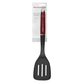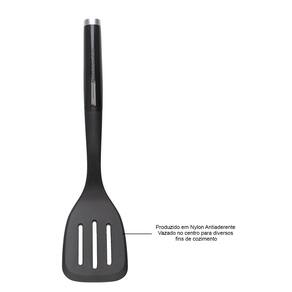 AEspátula Perfurada de Nylon Antiaderente da Kitchenaid contém furos no centro para diversos fins de cozimento, facilitando a drenagem de qualquer óleo ou água que tenha ficado no prato.