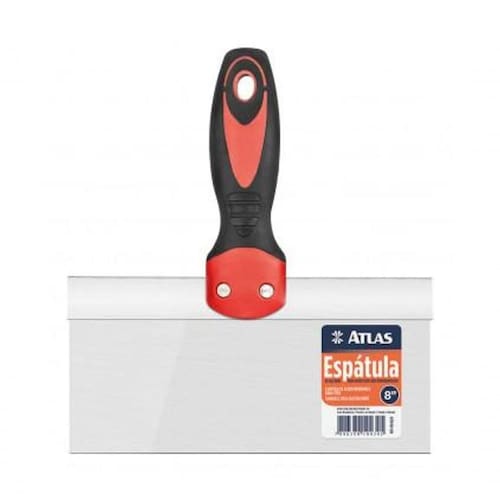 Espátula Retangular De Inox Para Drywall 8 - Atlas Indicada para aplicação de massa em paredes de drywall. Especificações Uso indicado Gesso e Drywall Peso 150 g Material Aço Inoxidável Tamanho 8 Características Aço Inox e Cabo emborrachado Altura 20 cm Largura 20 cm Comprimento cm Peso Bruto kg