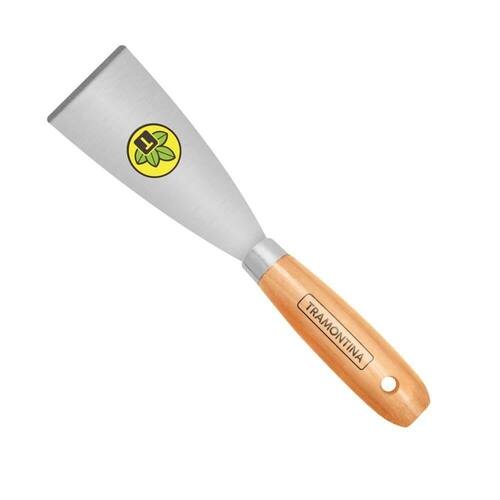 Espátula Rígida Com 10cm Em Aço Carbono E Com Cabo de Madeira - 77394105 - Tramontina Espatula Rigida 10cm C/cabo Madeira Tramontina Espátula Rígida com 10cm em Aço Carbono e com Cabo de Madeira - 77394105 - TRAMONTINA Descrição: A espátula rígida 10 cm Tramontina em aço carbono com cabo de madeira é indispensável na hora de construir ou reformar. É projetada para raspagem de resíduos e aplicação de gesso, massa corrida, rejunte e outros materiais. Além disso, auxilia você a fazer efeitos decorativas em texturas lisas ou granuladas. Possui lâmina de 10 centímetros produzida em aço carbono. Altamente durável e resistente, ela é uma ferramenta leve que torna o manuseio mais produtivo e menos cansativo. Apresenta ainda cabo em madeira de origem renovável e recebe acabamento envernizado, tornando a peça mais bonita e com um toque mais liso.