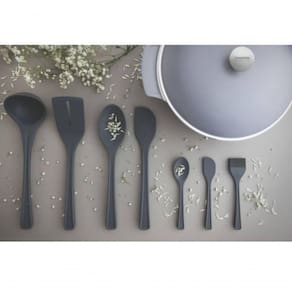 Espátula Tramontina Lyon Em Silicone Cinza Feitos de silicone com reforço interno, são os companheiros ideais para quem deseja explorar ao máximo as possibilidades da linha Lyon. Seguros, resistem até 180C ajudam a preservar as panelas com uma tecnologia que não agride o antiaderente nem a cerâmica. Recomendações de Uso: - Para garantir a durabilidade dos produtos, recomenda-se secá-los bem após a lavagem, mesmo sendo em máquina de lavar louças.- Foto meramente ilustrativa. Informações Adicionais: