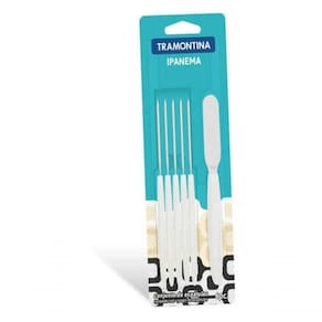Espátulas Para Tramontina Ipanema 6 Peças Branca A diversidade entra em cena para quemgosta de renovar o estilo da mesa a cada refeição. Até a cozinha ganha vida coma variedade de cores dos talheres. Os talheres da linha Ipanema são própriospara as refeições diárias. Despojados, tem nas diferentes opções de cores doscabos o toque de alegria que vai à mesa. Recomendações de Uso: Modo de uso: antes da primeira utilização, remova as eventuais etiquetas e lave usando apenas uma esponja macia, sabão ou detergente neutro. Outros tipos de produtos, como palha de aço, poderão riscar ou prejudicar o acabamento da peça. Enxágue cada item a fim de remover totalmente os resíduos dos produtos de limpeza, que, por serem abrasivos, podem danificar o inox. Após a lavagem enxaguar e secar bem a peça, caso contrário, as substâncias químicas da água (cloro) poderão causar manchas. Para maior durabilidade dos produtos recomenda-se secar bem antes de guardar, mesmo após lavagem em máquina. Evite o direto da peça com superfícies quentes, pois poderá provocar deformações ao produto. Evite atrito entre as peças durante o processo de lavagem e no armazenamento, para mantê-la sem riscos.- Foto meramente ilustrativa. Informações Adicionais: