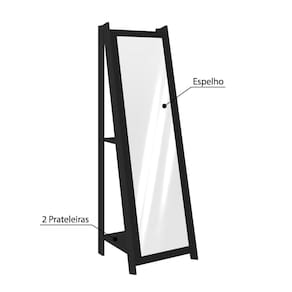 Espelheira 1,61m com 2 Prateleiras - Preto