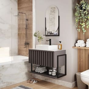 Espelheira para banheiro. Estrutura em metalon com design moderno e prateleira em MDF.