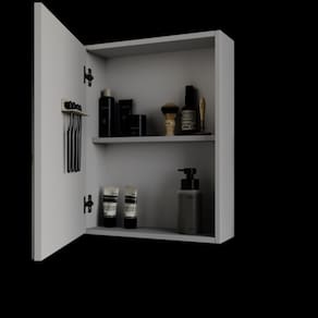 -Medida: 430 x 155 X 555mm -MDF 15MM Branco TX -Dobradiça com pistão com ângulo de abertura 110° -Porta Escova em PP -Espelho 3mm na porta -Fita Borda em PVC