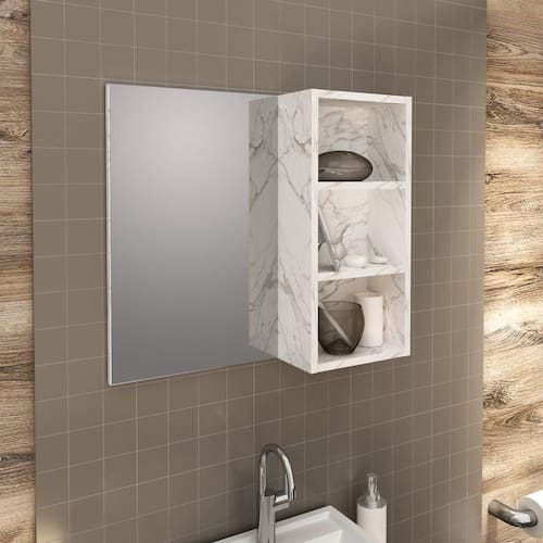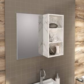 Espelheira Estante Suspensa Organizadora 1 Espelho 2 Prateleiras Para Banheiro Cor Branco Mármore - 54 x 60 cm