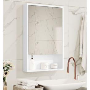 Espelheira Gaia Armário Aéreo Para Banheiro - Branco Medidas do produto montado: