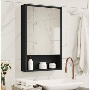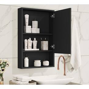 Espelheira Gaia Armário Aéreo Para Banheiro - Preto Medidas do produto montado: