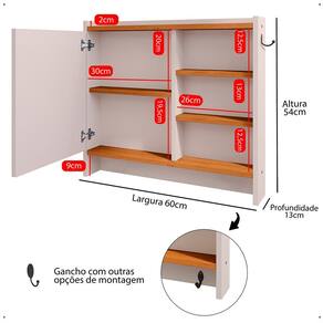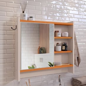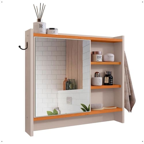 Espelheira Genova Armário Suspenso Gancho Prateleira Organizadora Armarinho Banheiro Off White/Cinamomo - Lojas RPM