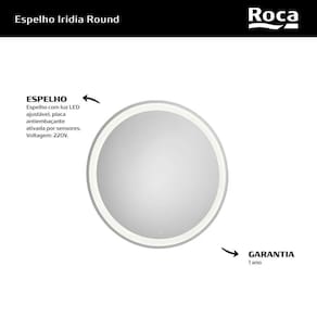 Este espelho da coleção Iridia da Roca traz modernidade ao banheiro. Possui: sensor “sem toque”, sistema anti-embaçante e controle de intensidade da luz.