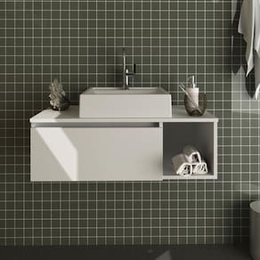 Características: Possui porta articulável e um nicho lateral. Estrutura em MDP e acabamento em pintura UV Não acompanha cuba