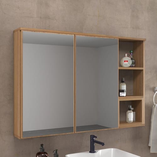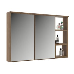 Fixada na parede, a espelheira máximus é elegante e possuí um acabamento impecável, com portas de abrir e espelhos grandes, e um nicho que deixa ainda mais bonita, é espaçosa, perfeita e indispensável para organizar seus itens de higiene pessoal. Feita de material resistente e de ótima qualidade, tendo a garantia de durabilidade que só produtos Belizze possuem. Acabamento da Porta: BP Acabamento da Prateleira: PVC Altura do Espelho: 67 cm Ambiente Principal: Banheiro codigo_ean: 7900288166609 Composição: 100% MDF Cor: Noce Cor do Produto: Noce Escala de Brilho: Fosco Espessura do Espelho: 3 mm Espessura do Material da Estrutura: 15 mm Fita Integrada: Sim Formato do Espelho: Retangular Itens Inclusos: 1 Espelheira e Manual de Instalação Largura do Espelho: 80 cm Linha ou Coleção: Máximus Manual de Montagem e Instalação: https://product-hub-prd.madeiramadeira.com.br/107730075/documents/5a0340ae-81ef-4eb2-9ddc-13faa324f8ee2983975566517492323835521.pdf Marca: Belizze Material da Porta: MDF Material da Prateleira: MDF Material Principal: MDF Necessita Montagem: Não Origem do Produto: Nacional Peso: 19,1 kg Peso Máximo por Prateleira: 30 kg Possui Espelho: 02 Espelhos com Tamanhos Iguais Possui iluminação: Não Possui Portas: 02 Possui Prateleiras: 05 Possui Toalheiro: Não Possui Tomadas: Não Recomendações de Uso, Manutenção e Limpeza: Retire o pó com uma flanela seca e depois utilize um pano macio umedecido com água. Não utilizar produtos químicos e abrasivos. Tipo de Dobradiça/Corrediça da Porta: Metálica Tipo de Fixação do Espelho: Fita Dupla Face Tipo de Porta: Abrir Tipo de Puxador da Porta: Não Possui