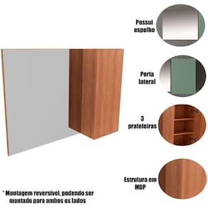 Espelheira para Banheiro 80 cm com 1 Porta Marina - Marrom