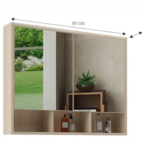 A espelheira orla 80 é linda e cheia de praticidade! Possuí duas portas de abrir com espelhos grandes, e dobradiças de amortecimento que fecham suavemente e que faz com que as portas fechem ser fazer barulho algum, e internamente tem prateleiras que contribuem na melhor organização dos seus itens. Na parte inferior, tem um nicho que pode ser utilizado para guardar os itens que mais usa no dia-a-dia ou até mesmo uma bela decoração, você realmente vai adorar. Acabamento da Porta: PVC Acabamento da Prateleira: BP Altura do Espelho: 68 cm Ambiente Principal: Banheiro codigo_ean: 7900288173935 Composição: 100% MDF Cor: Carvalho Cor do Produto: Carvalho Escala de Brilho: Fosco Espessura do Espelho: 3 mm Espessura do Material da Estrutura: 15 mm Fita Integrada: Sim Formato do Espelho: Quadrado Itens Inclusos: 1 Espelheira Largura do Espelho: 68 cm Linha ou Coleção: Orla Manual de Montagem e Instalação: https://product-hub-prd.madeiramadeira.com.br/547971567/documents/70d72d04-36c2-450b-967e-8b871da1a0842993141566517497311221873.pdf Marca: Belizze Material da Porta: MDF Material da Prateleira: MDF Material Principal: MDF Necessita Montagem: Não Origem do Produto: Nacional Peso: 15,3 kg Peso Máximo por Prateleira: 20 kg Possui Espelho: 02 Espelhos com Tamanhos Iguais Possui iluminação: Não Possui Portas: 02 Possui Prateleiras: 02 Possui Toalheiro: Não Possui Tomadas: Não Recomendações de Uso, Manutenção e Limpeza: Retire o pó com uma flanela seca e depois utilize um pano macio umedecido com água. Não utilizar produtos químicos e abrasivos. Tipo de Dobradiça/Corrediça da Porta: Metálica Tipo de Fixação do Espelho: Fita Dupla Face Tipo de Porta: Abrir Tipo de Puxador da Porta: Não Possui