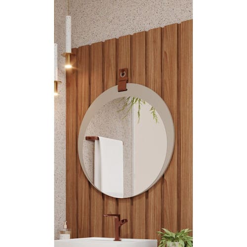 Espelheira Para Banheiro Alça em Couro Lua Espresso Móveis Cappuccino