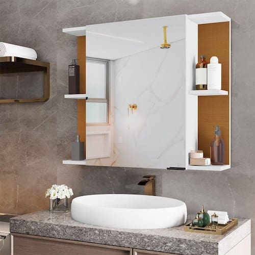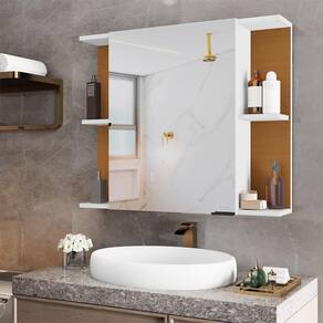 A Espelheira para Banheiro Armário Suspenso Nilo une pde e design moderno em um único produto. Ideal para banheiros e lavabos, ela conta com espelho central e nichos abertos nas laterais, que facilitam o acesso e a organização de objetos de uso diário, como escovas, perfumes e cosméticos.
