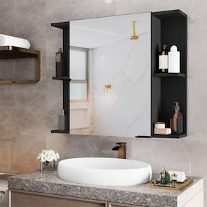 A Espelheira para Banheiro Armário Suspenso Nilo une pde e design moderno em um único produto. Ideal para banheiros e lavabos, ela conta com espelho central e nichos abertos nas laterais, que facilitam o acesso e a organização de objetos de uso diário, como escovas, perfumes e cosméticos.