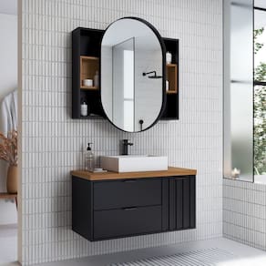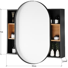 A espelheira Bianca é ideal para quem gosta de espaço e organização. Conta com porta de correr no espelho oval e o espaço interno possui prateleiras que cabem perfeitamente os itens de higiene pessoal. Além disso, seu design moderno trás todo um charme para o ambiente. Acabamento da Porta: PU Acabamento da Prateleira: PU Altura do Espelho: 87 cm Ambiente Principal: Banheiro Composição: MDF Cor: Preto Cor do Produto: Preto Cor Interna: Preto Escala de Brilho: Fosco Espessura do Espelho: 3 mm Espessura do Material da Estrutura: 15 mm Formato do Espelho: Oval Itens Inclusos: 1 Espelheira e manual de montagem, kit ferragens Largura do Espelho: 55 cm Linha ou Coleção: Bianca Manual de Montagem e Instalação: https://product-hub-prd.madeiramadeira.com.br/920705/documents/e96514a2-d5fa-44ca-b9fd-1a7460a22dd02107683371917196007388634.pdf Material da Porta: MDF Material da Prateleira: MDF Material Principal: MDF Necessita Montagem: Não Origem do Produto: Nacional Peso: 18 kg Peso Máximo por Prateleira: 10 kg Possui Espelho: 01 Possui iluminação: Não Possui Portas: 01 Possui Prateleiras: 02 Possui Toalheiro: Não Possui Tomadas: Não Recomendações de Uso, Manutenção e Limpeza: Utilize flanela seca ou pano macio, levemente umedecido com água. Evite contato com produtos químicos e abrasivos (solventes, thinner, acetona etc) e não utilize nenhum tipo de esponja de aço. Tipo de Dobradiça/Corrediça da Porta: Metálica Tipo de Fixação do Espelho: Silicone Tipo de Porta: Correr Tipo de Puxador da Porta: Não Possui