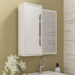 Dê um toque de elegância e praticidade ao seu banheiro com a nossa Espelheira! Fabricada em MDP 15 mm com Acabamento em Pintura UV na cor, ela é resistente à umidade e fácil de limpar. A porta garante um visual moderno e clean, enquanto as 3 prateleiras internas e o espelho amplo oferecem organização e funcionalidade. Produzida na cor branca, ela combina facilmente com qualquer estilo de decoração. CARACTERÍSTICAS TÉCNICAS: - Estrutura em MDP 15 mm - Acabamento em Pintura UV na cor Branca - Porta com Dobradiças Metálicas - Possui 1 Porta, 3 Prateleiras e 1 Espelho INFORMAÇÕES TÉCNICAS: Altura: 60 cm Largura: 60 cm Profundidade: 15,6 cm Peso: 11,35 kg INFORMAÇÕES ADICIONAIS: *ATENÇÃO: Não trabalhamos e não nos responsabilizamos pela montagem do móvel. Antes da montagem conferir se o produto está de acordo com o que comprou, produto montado e danificado pela montagem não será aceito troca. **As imagens ambientadas são meramente ilustrativas e podem apresentar itens que não compõe o produto. As cores do produto podem variar de acordo com o monitor, a iluminação do ambiente ou sua percepção visual. ***Limpeza: Deve ser feita com pano macio e seco ou levemente umedecido com água e sabão neutro. Não devem ser utilizados abrasivos como palha de aço e objetos cortantes. Garantia para defeitos de fabricação conforme Código de Defesa do Consumidor.