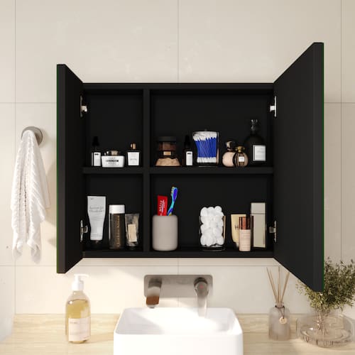 ???? Organização Interna: * 2 portas com espelho * 2 prateleiras internas * Espaço dividido em 4 nichos para melhor organização dos seus produtos