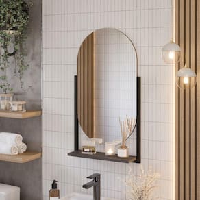 Formato oval com estrutura em metalon 1 prateleira MDF Espelheira com espelho de 3mm