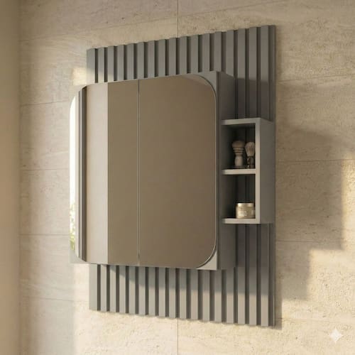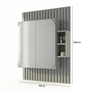A Espelheira Ripado de 80cm, composto com amplo espaço interno, com nicho lateral, duas portas com espelho e dobradiças com amortecimento que fecham as portas suavemente. Design único e características que garantem melhor e maior durabilidade ao produto, o detalhe em ripado dá um charme a mais no seu banheiro, com o sistema com as dobradiças em amortecimento faz com que as portas fecham suavemente e sem fazer barulho e uma gaveta inferior com trilhos telescópicos que deslizam ao abrir e fechar. Acabamento da Porta: BP Altura do Espelho: 60 cm Ambiente Principal: Banheiro codigo_ean: 7900288345981 Complexidade da Montagem: Baixa: pode ser montado por uma pessoa sozinha Composição: 100% MDF Cor: Cimento Cor do Produto: Cimento Cor Flex: Não Cor Interna: Cinza Escala de Brilho: Fosco Espessura do Espelho: 3 mm Espessura do Material da Estrutura: 17 mm Formato do Espelho: Retangular Itens Inclusos: 1 Espelheira e Manual de Montagem/Instalação Largura do Espelho: 60 cm Linha ou Coleção: Ripado Manual de Montagem e Instalação: https://product-hub-prd.madeiramadeira.com.br/614160883/documents/300b0775-99cf-4499-a696-fb83abbbcf5cbf7dc3f907d7e1e11772647458.pdf Marca: Belizze Material da Porta: MDF Material Principal: MDF Montagem Flex: Não Necessita Montagem: Sim Origem do Produto: Nacional Peso: 26 kg Possui Espelho: 02 Espelhos com Tamanhos Iguais Possui iluminação: Não Possui Portas: 02 Possui Prateleiras: Não Possui Toalheiro: Não Possui Tomadas: Não Recomendações de Uso, Manutenção e Limpeza: Retire o pó com uma flanela seca e depois utilize um pano macio umedecido com água. Não utilizar produtos químicos e abrasivos. Sistema de Montagem: Parafusos Tipo de Dobradiça/Corrediça da Porta: Metálica Tipo de Fixação do Espelho: Parafusos Tipo de Porta: Abrir Tipo de Puxador da Porta: Não Possui