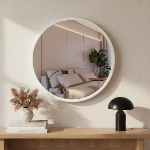 Espelheira Redondo 60cm Moldura Alumínio Basic Branco