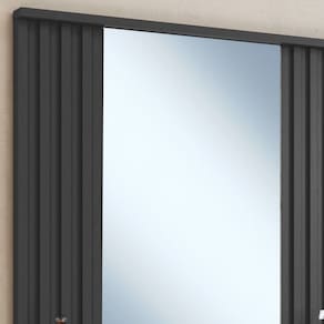 Características adicionais: acompanha espelho e prateleira, peças ripadas aplicadas no painel
