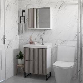 Design elegante e funcional Armário espelheira com detalhe ripado, feito em MDF, que adiciona charme e modernidade ao banheiro.