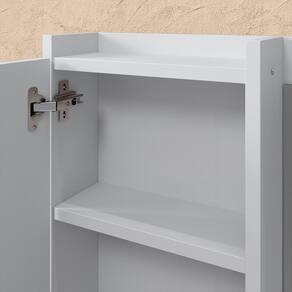Ela conta com uma porta que permite armazenamento de itens de higiene pessoal de forma discreta e segura, protegendo-os da umidade e do acúmulo de poeira.
