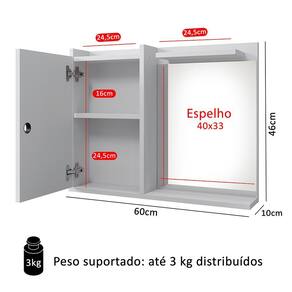 A Espelheira também possui um espelho de excelente qualidade, oferecendo uma imagem nítida e clara, facilitando a realização de ações diárias, como: escovar os dentes, fazer a barba, se maquiar, entre outras atividades.