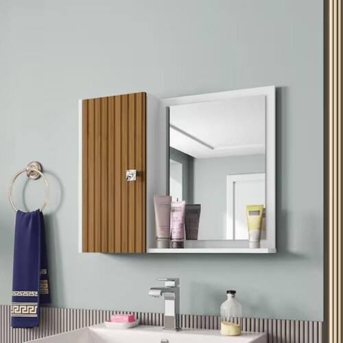 espelho fixado e prateleira