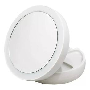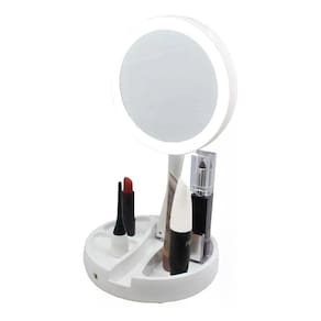 Este espelho portátil e articulável com iluminação de LED facilitará sua vida na hora de se maquiar, experimentar acessórios e até mesmo se barbear. Espelho dupla-face, sendo uma comum 1x e outra super zoom 10x . Pode ser utilizado em qualquer ambiente, além de ser compacto, possui iluminação em LED, de ambos os lados, assim mesmo em locais com pouca luz, terá uma boa visibilidade do rosto. Os LEDs são ligados através de 4 pilhas AA ou diretamente em alguma entrada USB cabo incluso . Possui compartimentos para guardar itens pequenos, como batons, cílios postiços, etc. É articulado e super compacto, cabe em qualquer bag Principais Características Espelho Duplo Dobrável Luzes de LED na frente e atrás Estende-se até 13 polegadas de altura Portátil para fácil transporte em viagem 10x de aumento em um lado e 1x imagem real do outro lado Compartimento para armazenar maquiagem e acessórios Alimentação por cabo USB ou pilhas não inclusas Leds são classificados por 30.000 horas Características: Medida: Ø16cm Aberto: 28,5cm Fechado: 5cm Peso: 100g Material: Silicone Conteúdo: - 1 x Unidade de Espelho Articulável Cod: MR-10 Sku: TB000362 Marca: Etx