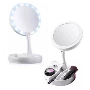 Espelho Articulável com Luz de Led Dupla Face Aumento De 10X