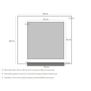 Espelho para banheiro com prateleira 40cm x 40cm mármore preto Os nossos espelhos são ideais para banheiros e lavabos trazendo um toque especial no projeto de decoração e proporcionando um design moderno e arrojado no ambiente. Além da elegância, sofisticação e praticidade tem a qualidade e a durabilidade indiscutível, pois todos os itens podem molhar que não irá danificar, a pintura do vidro é feita na mais moderna impressão em alta definição com texturização, garantindo que matenha os detalhes da impressão ao longo dos anos, os suportes da prateleira e as tampas dos parafusos são de inox, mais uma de excelência da qualidade desse produto. Itens inclusos: - vidro temperado com impressão em alta definição: 40 cm x 40 cm largura x altura - espelho: 31 cm x 31 cm x largura x altura - prateleira: 31 cm x 8 cm largura x profundidade - kit parafusos completo para instalação Espessuras: - vidro temperado com impressão em alta definição: 5 mm - espelho: 3 mm - prateleira: 8 mm Montagem: montagem e instalação não inclusa na venda ou preço do produto, elas são de inteira responsabilidade do cliente. Atenção: o espelho já vai fixado no vidro. Imagens ilustrativas. Marca: Não Informado