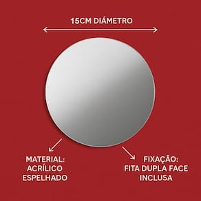 Espelho Base de Acrílico Redondo Multiuso 15CM Decorativo Com Adesivo Dupla Face Transforme a decoração e a organização do seu espaço com o Espelho Decorativo Redondo em Acrílico 15 cm. Versátil e leve, ele pode ser utilizado tanto como espelho de parede quanto como base expositora para joias, perfumes e pequenos objetos. Feito em acrílico espelhado de alta qualidade, garante reflexo nítido e moderno, além de ser mais seguro e prático que o vidro. Por ser leve, acompanha fita dupla face de alta fixação, que facilita a instalação sem furos na parede. Seu design redondo minimalista combina com qualquer ambiente: quartos, salas, lavabos, halls de entrada ou até em vitrines e lojas. Benefícios Fácil instalação com fita dupla face inclusa Leve e seguro em comparação ao vidro Versátil: pode ser na parede ou como base expositora Design redondo minimalista e elegante Especificações Técnicas Modelo: Espelho decorativo redondo Material: Acrílico espelhado Diâmetro: 15 cm Fixação: Fita dupla face inclusa Uso: Parede ou base expositora Dicas de Uso Use na parede para ampliar ambientes pequenos. Utilize como base para joias e acessórios, criando composições sofisticadas. Para limpeza, use apenas pano macio e seco. Produto com contra defeitos de fabricação. Marca: Não Informado
