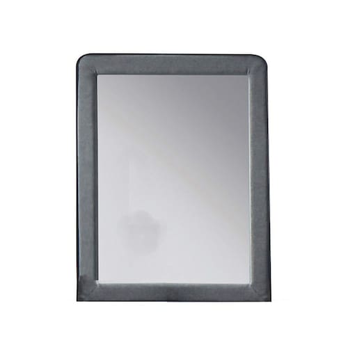 Espelho de moldura de madeira estofado em tecido Benjara com acabamento embutido, cinza e prata