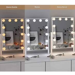 Espelho Camarim é perfeito para quem ama cuidar da beleza. Com luzes de LED integradas, é ideal para ser colocado sobre a penteadeira, bancada, banheiro, agregando estilo à decoração e iluminando suas produções.