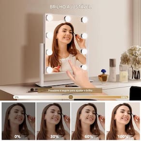 Espelho Camarim é perfeito para quem ama cuidar da beleza. Com luzes de LED integradas, é ideal para ser colocado sobre a penteadeira, bancada, banheiro, agregando estilo à decoração e iluminando suas produções.