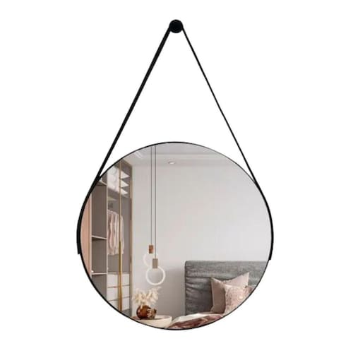 Características Modelo: decorativo Forma do espelho: redonda Cor da moldura: preto Estilo: minimalista Material da moldura: sintético Usos do espelho: decorativo
